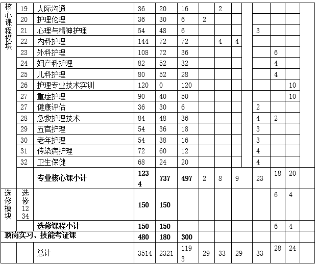 10 | 医用化学 | 依据《中等职业学校护理专业教学大纲》开设,并与专业实际和行业发展密切结合 | 64 |