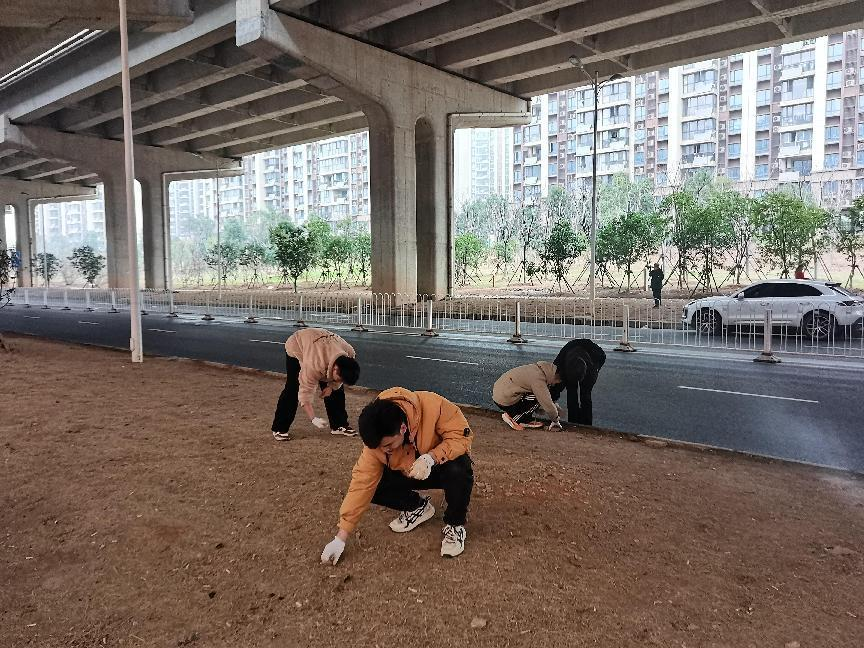在雷锋纪念日之际,我校入团积极分子60余人利用社团活动时间,自发参与打扫校外明泽街公共区域绿化带、停车场卫生。